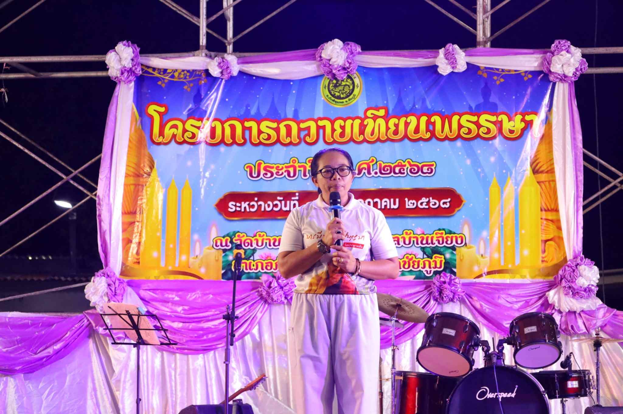 วันที่ 8 กรกฎาคม 2568 เวลา 18.00 น. นายภัทราวุธ สิมช้า ผู้อำนวยการโรงเรียนเจียงทองพิทยาคม พร้อมด้วยผู้บริหาร คณะครู และนักเรียนโรงเรียนเจียงทองพิทยาคม ร่วมกิจกรรมการถวายเทียนพรรษา ประจำปี 2568 โดยมีนางสาวอัจฉรา อาษาสู้ ประธานในพิธี โครงการถวายเทียนพรรษา ประจำปี 2568 ณ วัดบ้านคลองจันลา ตำบลบ้านเจียง อำเภอภักดีชุมพล จังหวัดชัยภูมิ