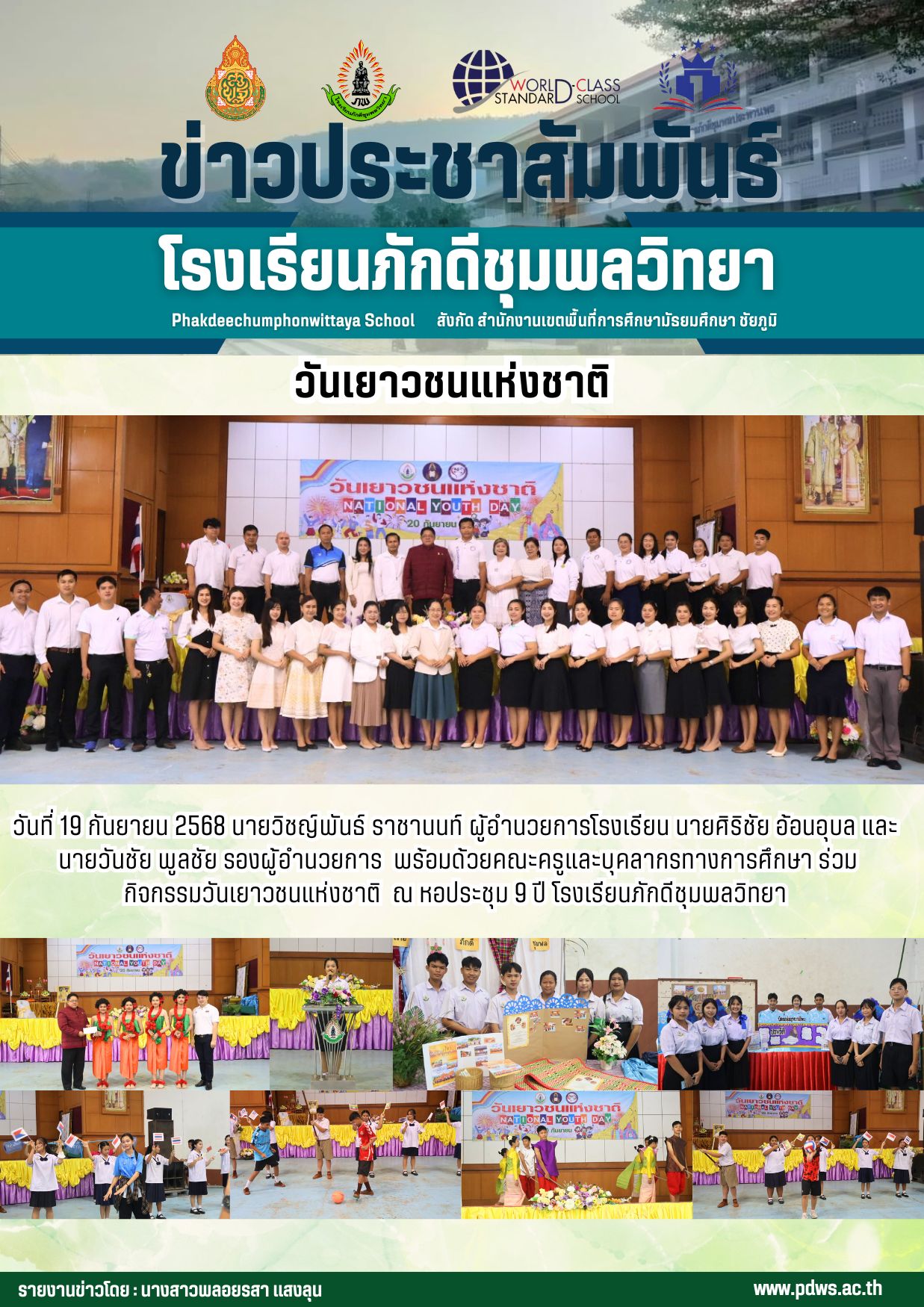 วันที่ 19 กันยายน 2568 โรงเรียนภักดีชุมพลวิทยา จัดกิจกรรมวันเยาวชนแห่งชาติ