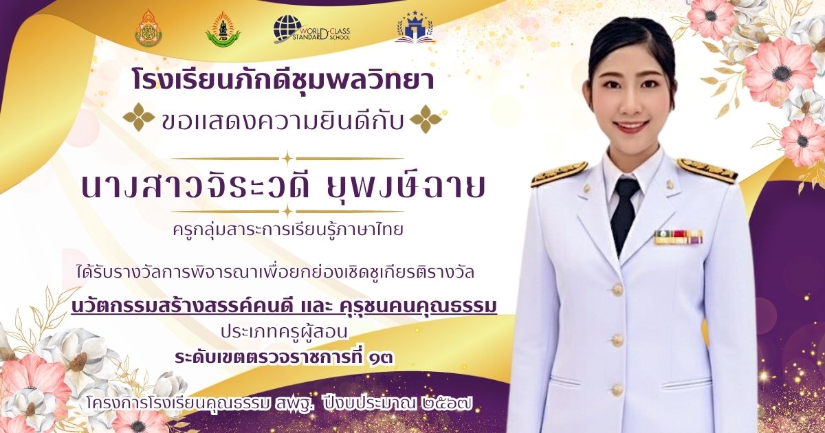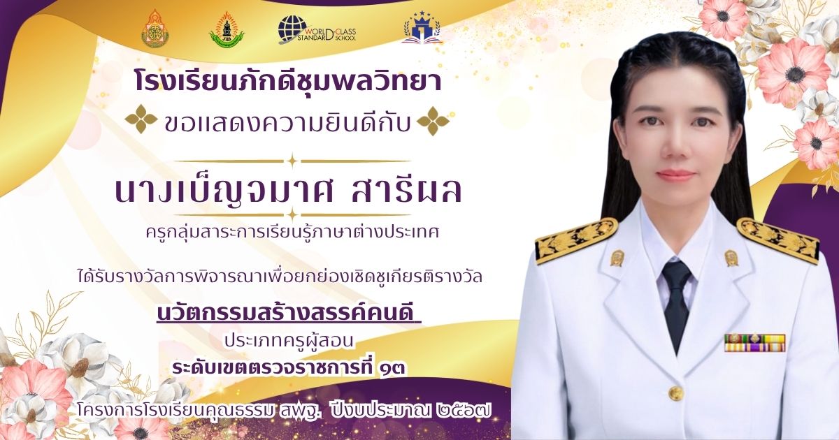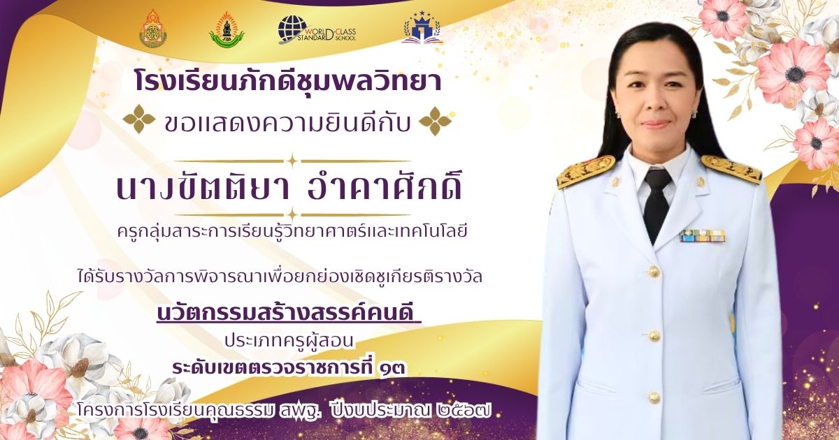 ประกาศ ณ วันที่ ๑๑ กันยายน ๒๕๖๘ โรงเรียนภักดีชุมพลวิทยา คณะครู ได้รับรางวัล ดังนี้