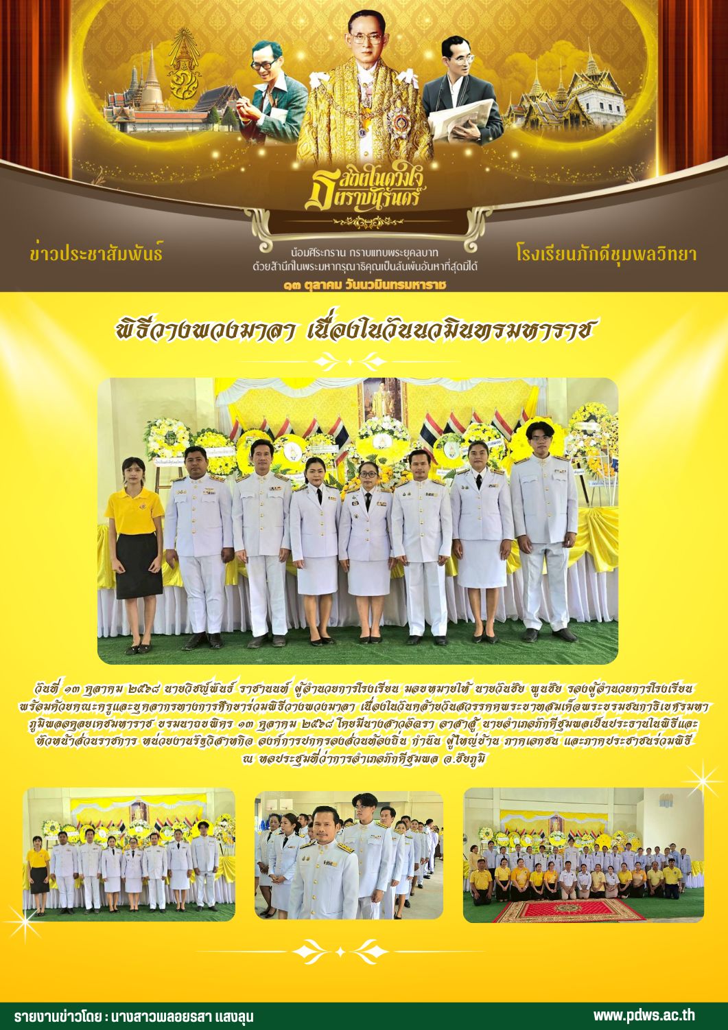 โรงเรียนภักดีชุมพลวิทยา เข้าร่วมพิธีวางพวงมาลา เนื่องในวันนวมินทรมหาราช ณ ที่ว่าการอำเภอภักดีชุมพล จ.ชัยภูมิ