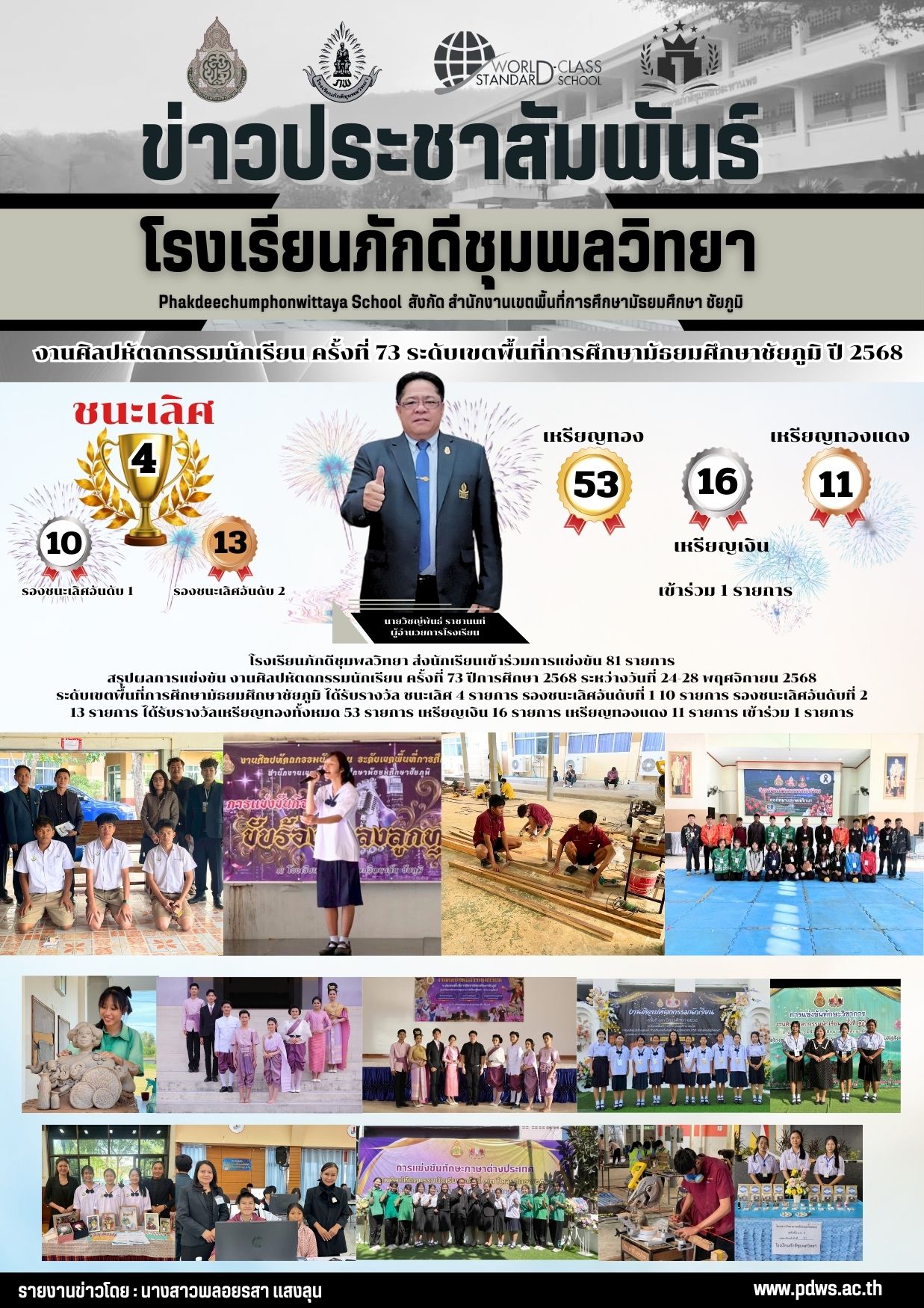 โรงเรียนภักดีชุมพลวิทยา สรุปผลการแข่งขัน งานศิลปหัตถกรรมนักเรียน ครั้งที่ 73 ระดับเขตพื้นที่การศึกษามัธยมศึกษาชัยภูมิ ปี 2568