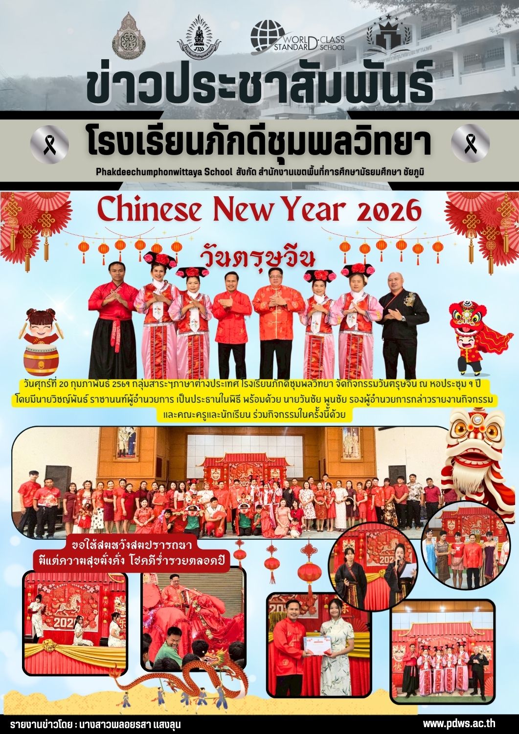 วันศุกร์ที่ 20 กุมภาพันธ์ 2569 กลุ่มสาระฯภาษาต่างประเทศ โรงเรียนภักดีชุมพลวิทยา จัดกิจกรรมวันตรุษจีน ณ หอประชุม 9 ปี