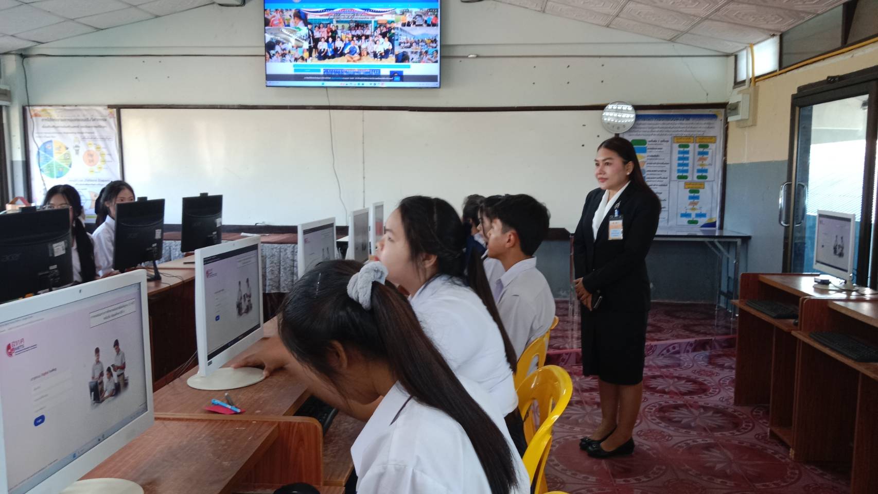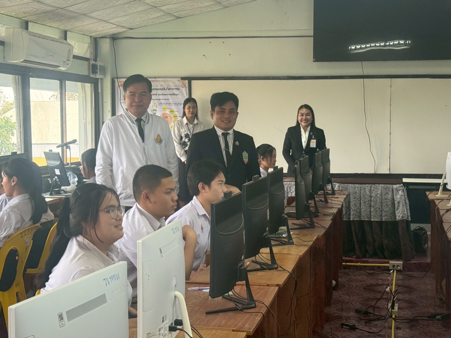 นางสาววราลักษณ์ จุลละนันทน์ รองผู้อำนวยการโรงเรียนสามหมอวิทยา และคณะครู กลุ่มงานที่รับผิดชอบ พร้อมด้วยเจ้าหน้าที่ที่เกี่ยวข้อง สนามการทดสอบทางการศึกษาระดับชาติขั้นพื้นฐาน (O-NET) ระดับชั้นมัธยมศึกษาปีที่ 6 โรงเรียนหนองบัวระเหววิทยาคาร